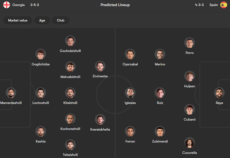 Không ngạc nhiên khi Tây Ban Nha được đánh giá cao hơn đáng kể. So với Georgia thì La Roja vượt trội về mọi phương diện, bao gồm cả chất lượng cầu thủ lẫn thành tích tại các vòng loại World Cup.