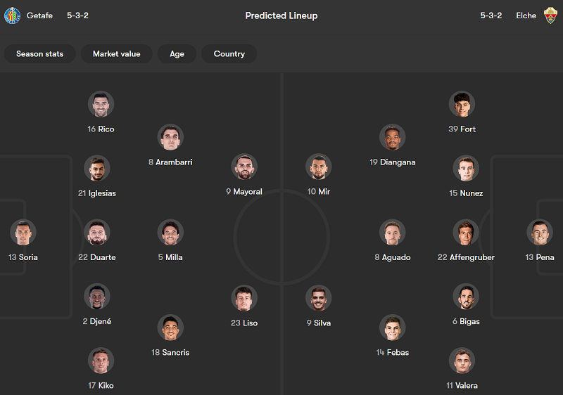 - Elche: Victor Chust không thể thi đấu vì lý do thẻ phạt; Josan chưa chắc chắn về khả năng ra sân.
