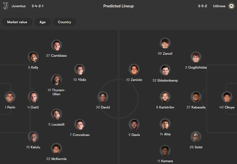 Tại Serie A 2025/26, Juventus dần bị bỏ lại trong cuộc đua giành Scudetto. Bianconeri lúc này kém tới 9 điểm so với đội dẫn đầu là Napoli: 12 so với 21. Udinese sau chiến thắng với tỷ số 3-2 trên sân nhà trước Lecce cũng có được 12 điểm: thắng 3, hòa 3, thua 2.