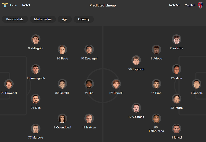 Lazio khoảng một thập kỷ rưỡi vừa qua thực sự thích tiếp đón Cagliari. Cụ thể: Lazio thắng tới 12/13 lần tiếp đón Cagliari thuộc khuôn khổ Serie A kể từ tháng 10/2010. Lazio ghi từ 2 bàn trở lên trong 9/12 chiến thắng ấy.