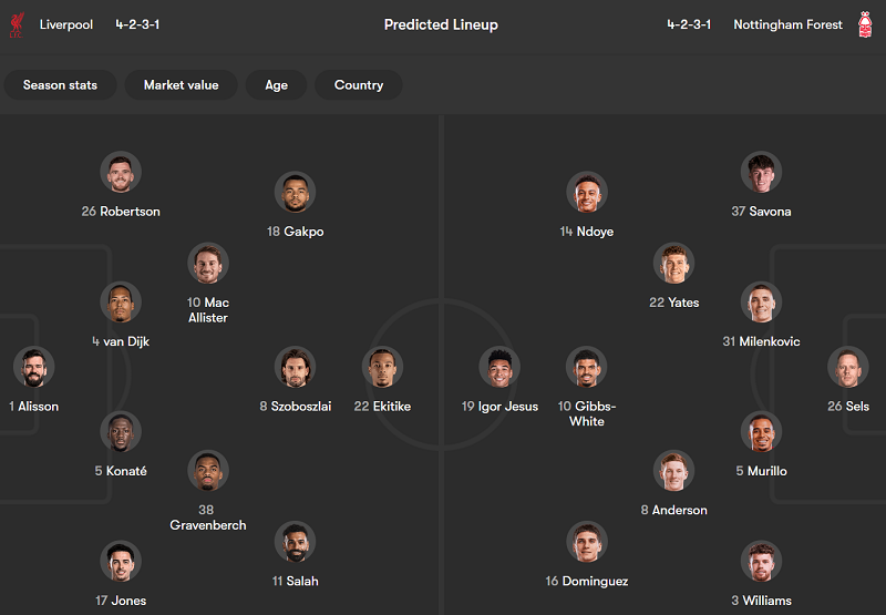 Thông tin trận đấu Liverpool vs Nottingham Forest