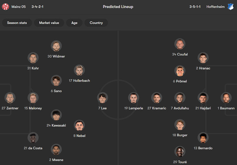 Thông tin trận đấu Mainz 05 vs Hoffenheim