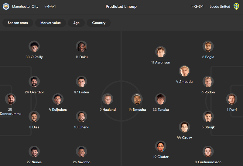 Thất bại trước Newcastle khiến Man City bị Arsenal gia tăng khoảng cách lên thành 7 điểm. Erling Haaland cùng đồng đội cần đánh bại Leeds United để tìm lại niềm vui cũng như tránh việc bị Pháo thủ bỏ lại quá xa trong cuộc đua vô địch giải Ngoại hạng Anh 2025/26.