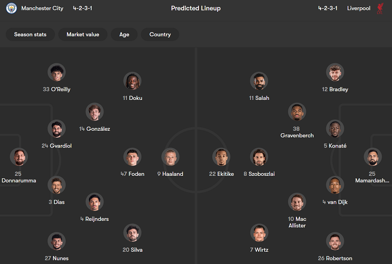 - Liverpool: Alisson Becker, Giovanni Leoni, Jeremie Frimpong và Stefan Bajcetic chưa thể thi đấu trở lại; Alexander Isak chưa chắc chắn về khả năng ra sân.