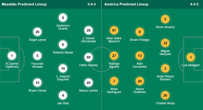 - Club America: Alex Zendejas, Dagoberto Espinoza, Isaias Violante và Jose Zuniga chưa bình phục chấn thương; khả năng ra sân của Henry Martin còn bỏ ngỏ.