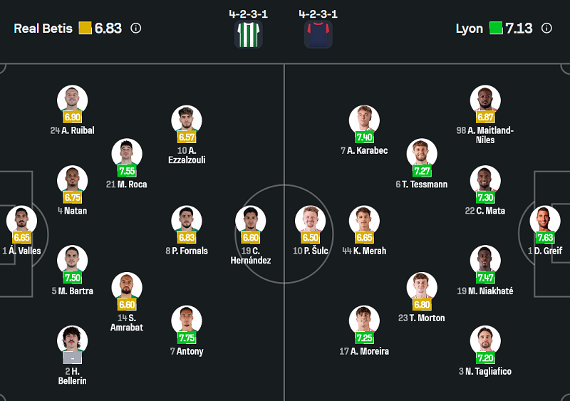 Cùng bất bại cả 3 lượt đấu đầu tiên của giai đoạn League phase giải Europa League 2025/26 nhưng Real Betis giành được ít điểm hơn Lyon: 5 so với 9. Lyon thuộc nhóm 3 đội có được thành thành tích toàn thắng, cùng với Midtjylland và SC Braga.
