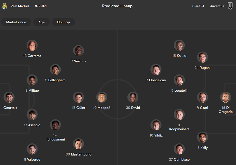 Thực sự bất ngờ khi Real Madrid chấp Juventus 1 trái. Dù sa sút trong thời gian gần đây, Bianconeri vẫn bất bại 8/9 trận kể từ khi mùa giải hiện tại khởi tranh. Tập thể do HLV Igor Tudor dẫn dắt cũng không thua toàn bộ 2 lượt đấu đầu tiên của giai đoạn League phase UEFA Champions League 2025/26.