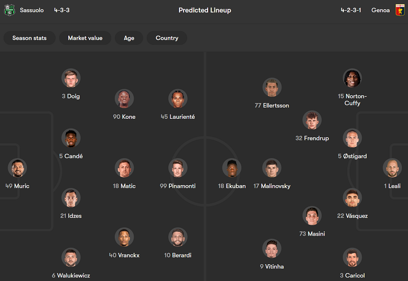 - Genoa: Không thiếu vắng cầu thủ nào vì chấn thương hay thẻ phạt.