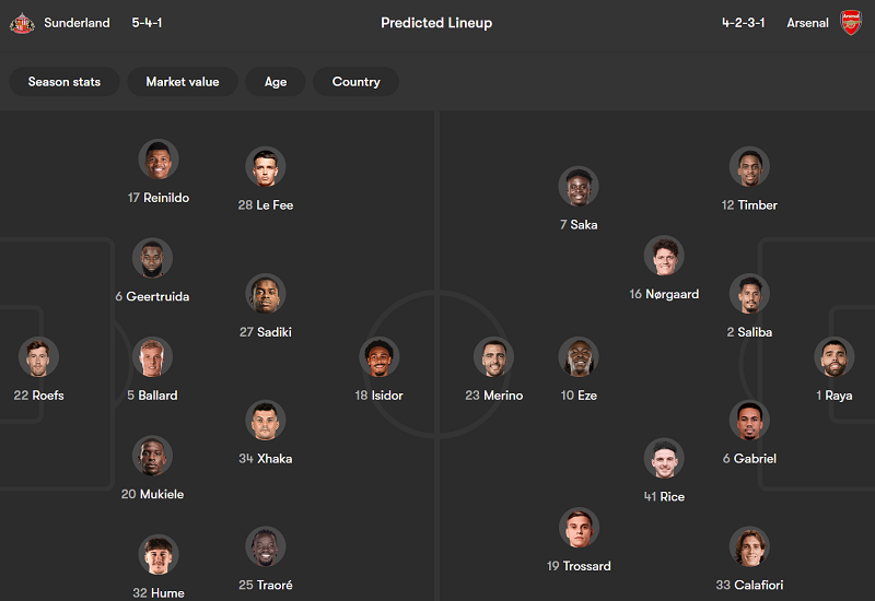 Màn so tài giữa Sunderland vs Arsenal thuộc vòng 11 giải Ngoại hạng Anh 2025/26. Trận đấu này diễn ra lúc 00h30 ngày 9/11 theo giờ Việt Nam tại sân vận động Stadium of Light (Sunderland, Anh).