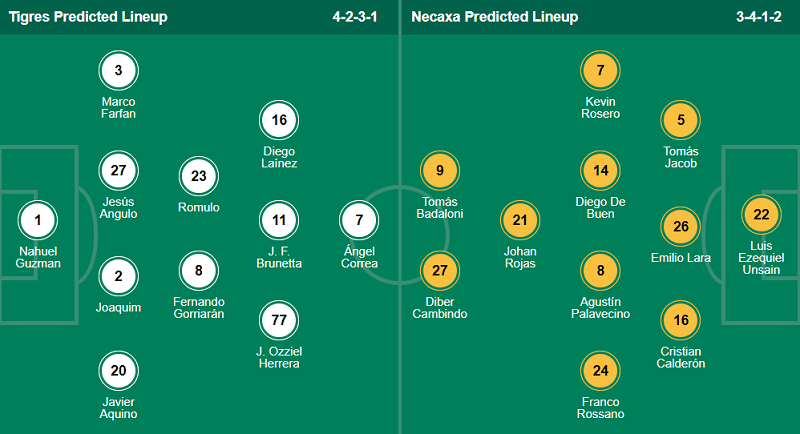 - Tigres UANL: Fernando Tapia và Jesus Angulo chưa chắc chắn về khả năng ra sân.