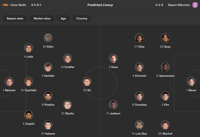 Thông tin trận đấu Union Berlin vs Bayern Munich
